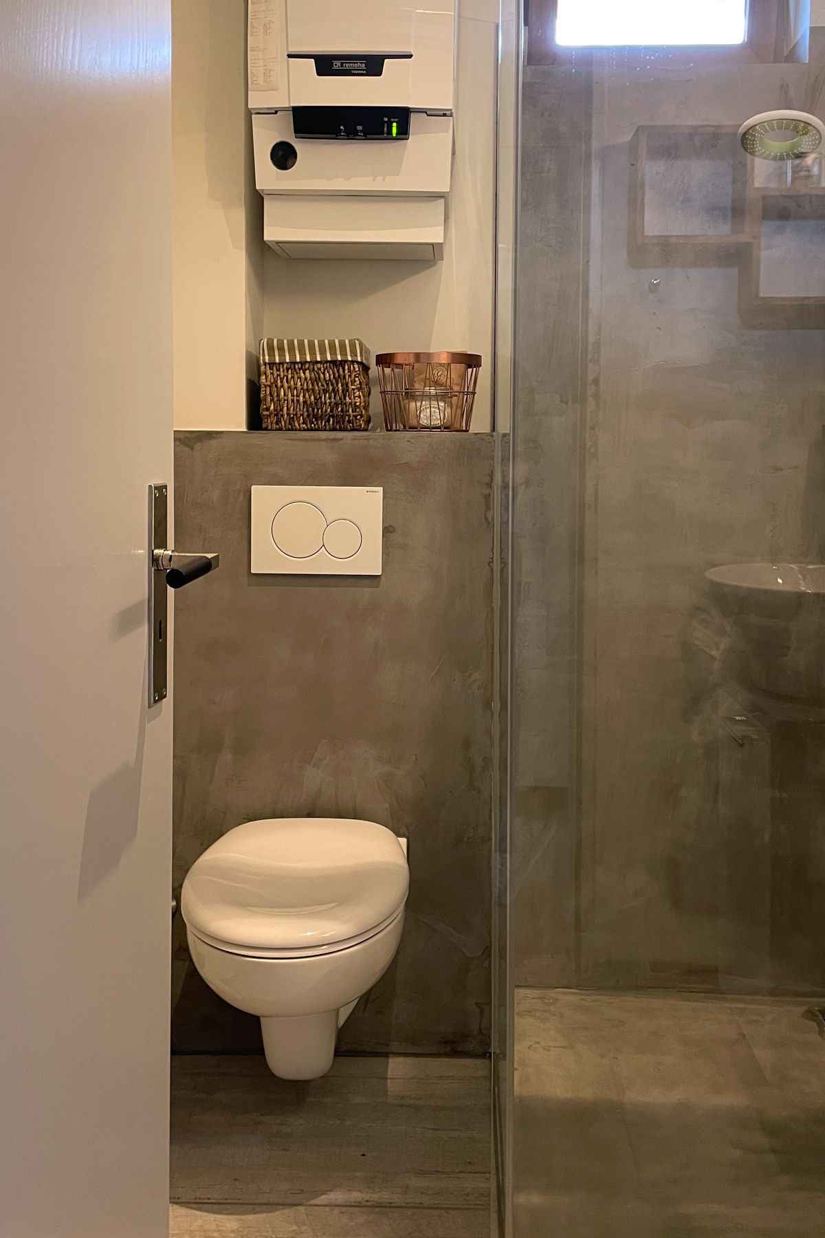 - modernes Bad mit Dusche und Fenster