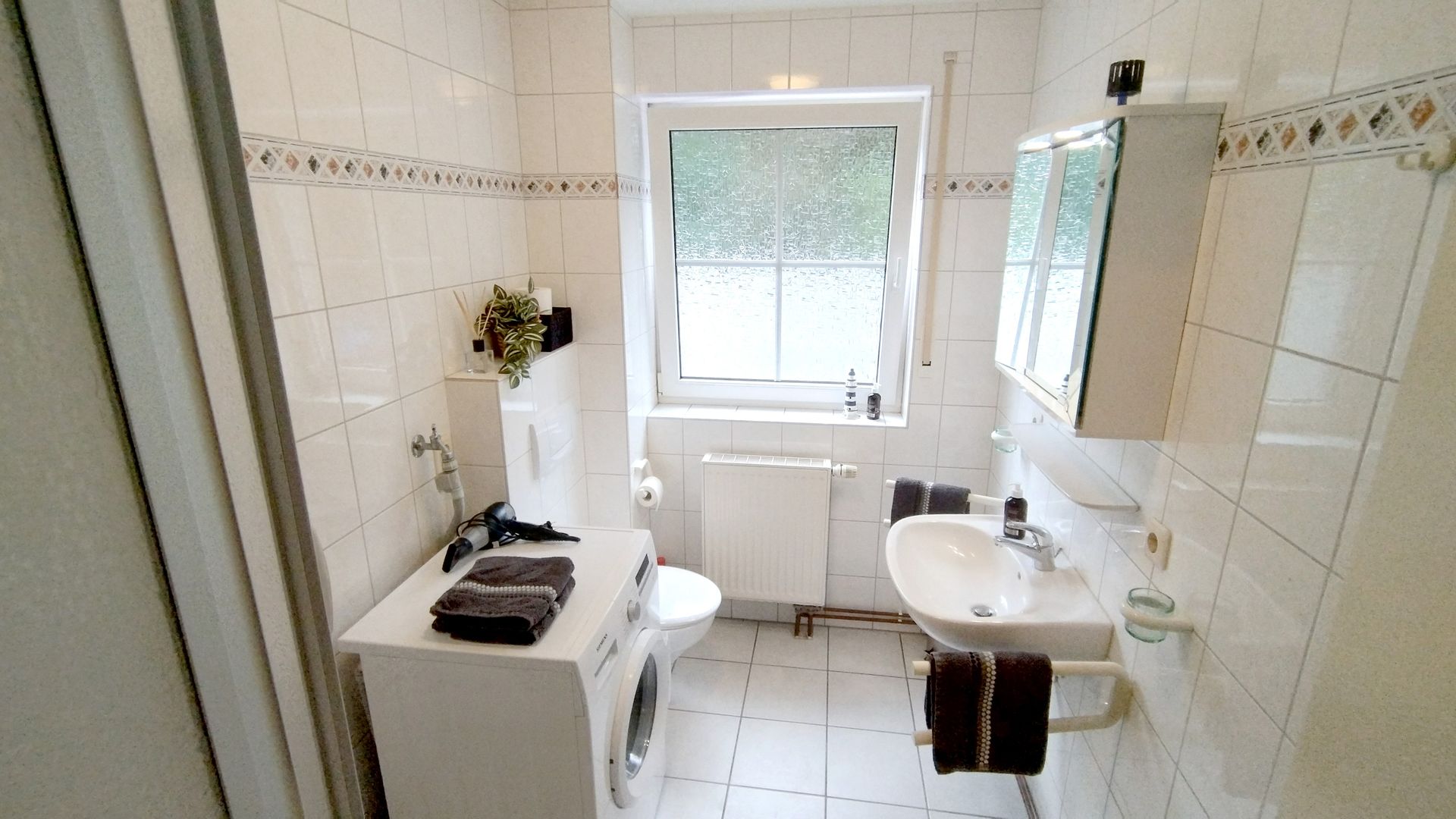 - helles Bad mit Dusche (Föhn vorhanden) mit Fenster